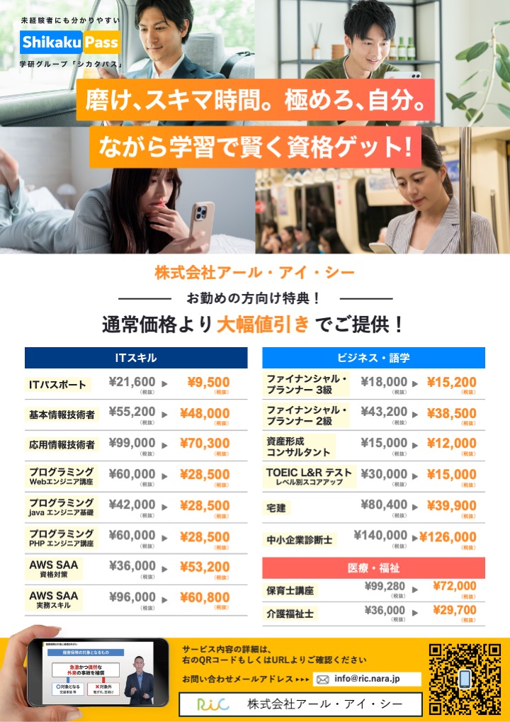 オンライン資格学習サービス「Shikaku Pass」をご提供しております。